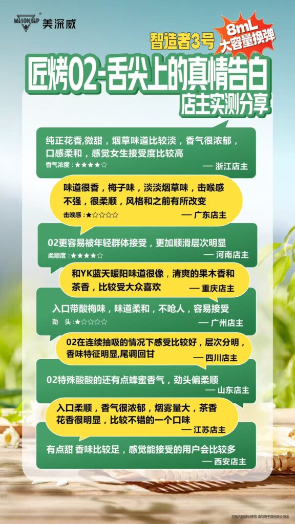 智造者3号口味选购指南 的核心在于其三款匠烤口味风格迥异,满足了不同用户的解瘾和口味需求。所有口味均采用 8mL/颗 大容量烟弹,性价比极高。