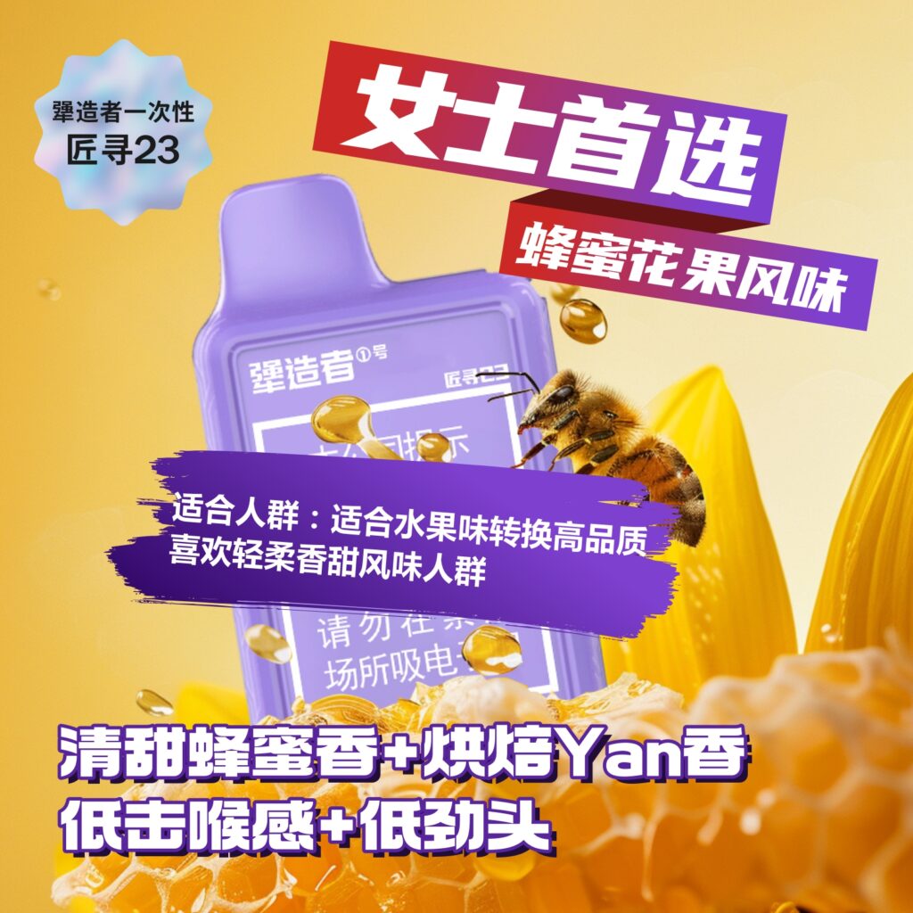 犟造者1号匠寻23评测 聚焦于其独特的 蜂蜜花香风味。这款口味被明确推荐为女士首选,旨在提供极度柔和、低刺激的吸食体验。
