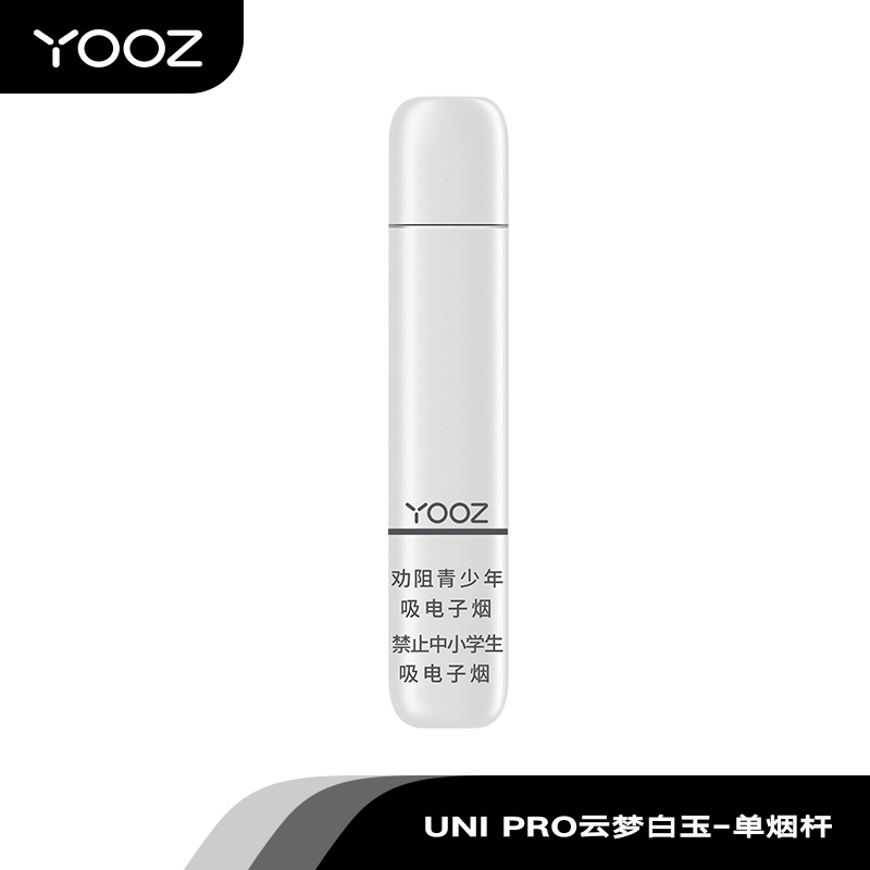 在YOOZ 5代UNI的烟杆矩阵中,标准版“精灵白”以其极致轻巧(22.6克)和500mAh续航,成为了“轻量性价比”的代表。而今天我们要评测的,是5代旗舰Pro系列中的纯白美学代表——“云梦白玉”。