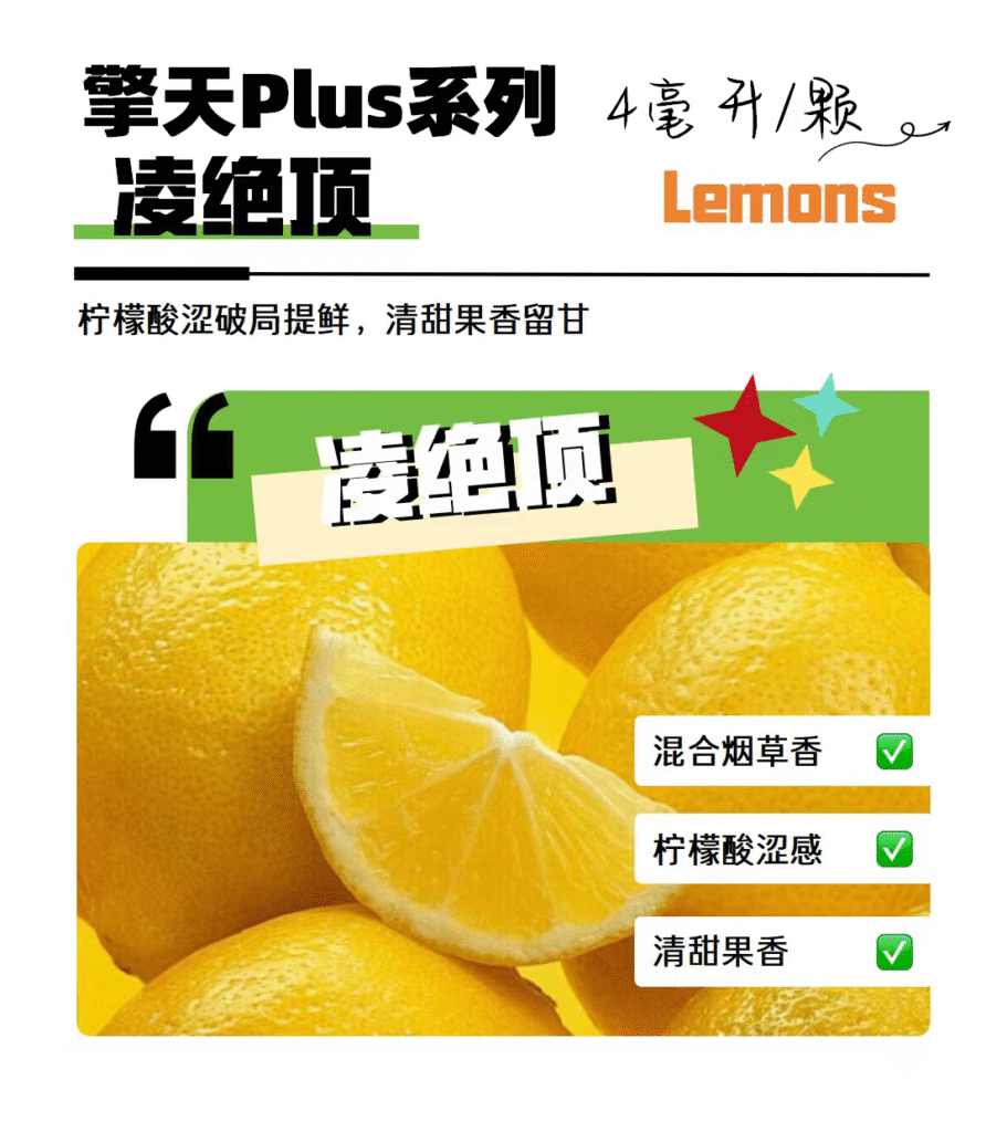 口味是本次评测的核心。官方定义其为 Lemons(柠檬),核心卖点是“柠檬酸涩破局提鲜,清甜果香留甘”。