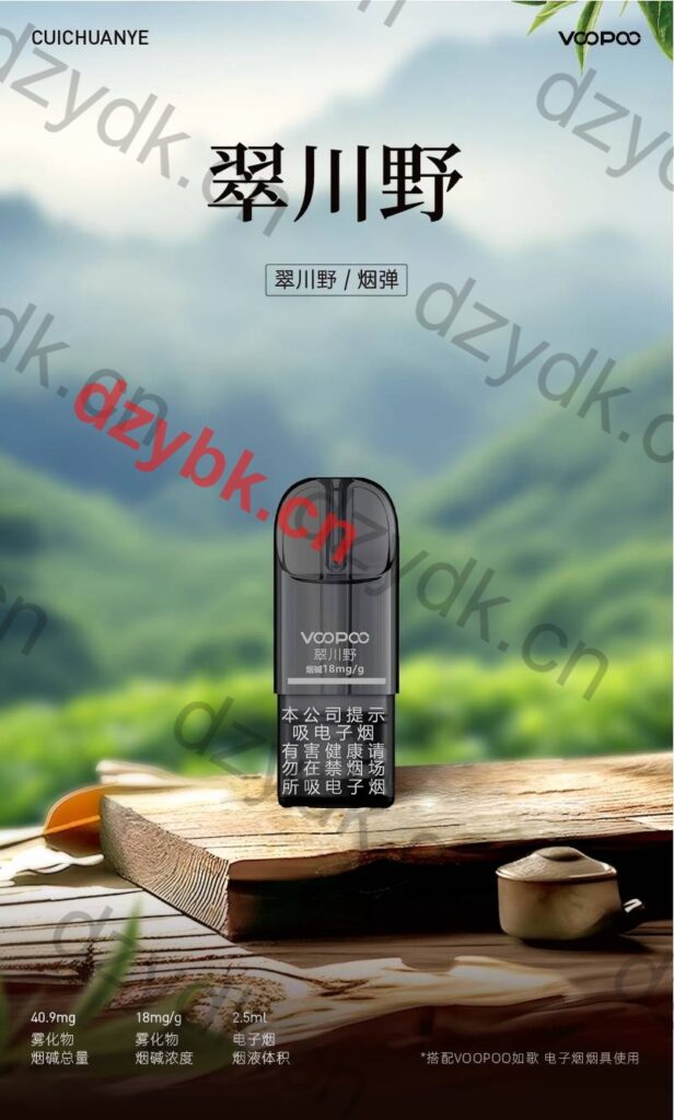 总的来说,VOOPOO翠川野是一款在喧嚣中寻找宁静的产品。它用2.5ml的诚意容量和清雅的茶韵,为悦刻用户提供了一杯“能抽的功夫茶”。