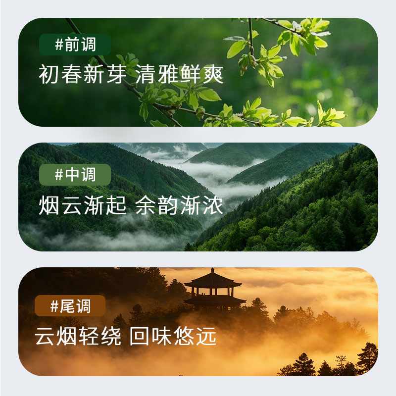 前调 明前龙井茶香,中调 淡淡甘甜,后调 清雅清甜烟草香