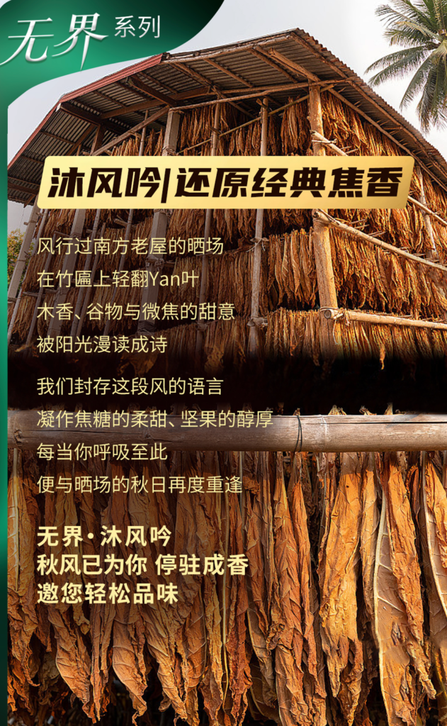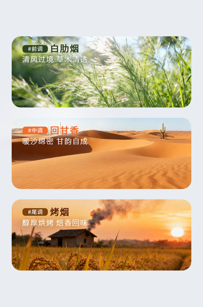 前调 白肋烟,清风过境 ,草木清透,中调 回甘香 暖沙绵密 ,甘韵自成,后调 雪茄香,醇厚烘烤 焙香回味。